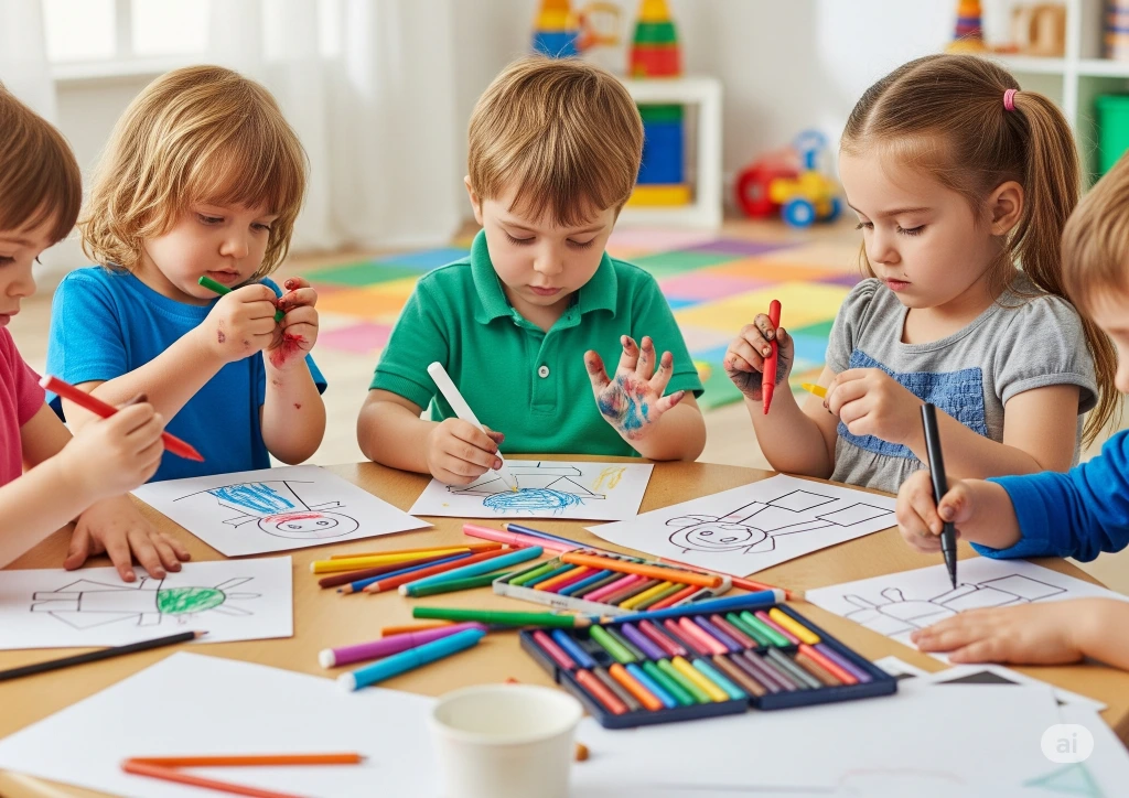 Eine vorbereitete Umgebung und spezielle Werkangebote fördern die Kreativität und die Phantasie der Kinder. Mit den unterschiedlichsten Materialien wird geformt und gestaltet.
